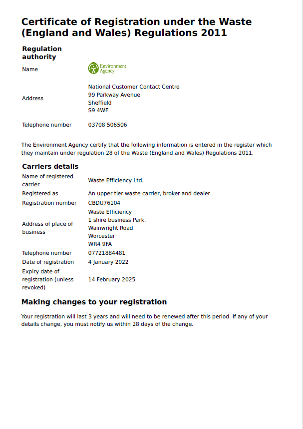 • Waste Efficiency have long since moved from subcontractor to firm partner with significant benefits to both parties.