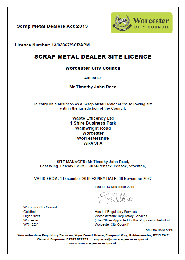 Scrap Metal Dealer License